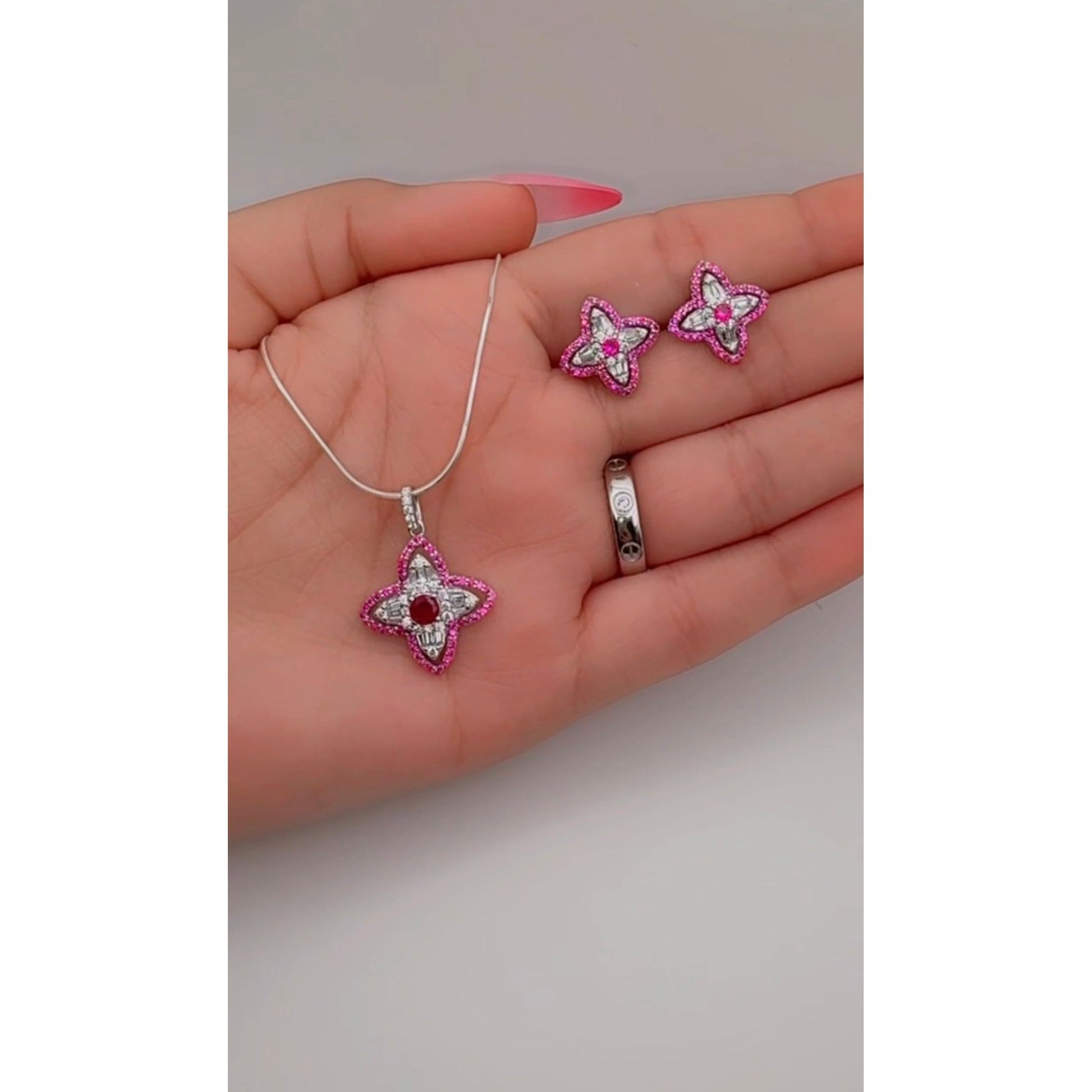 Bring a touch of charm and elegance to your style with this Floral Pendant Set crafted in 925 Sterling Silver. Designed with sparkling pink π and white zircon β¨ stones in a flower shape, this set includes a pendant necklace πΏ and matching stud earrings πΈ β the perfect blend of femininity and elegance.