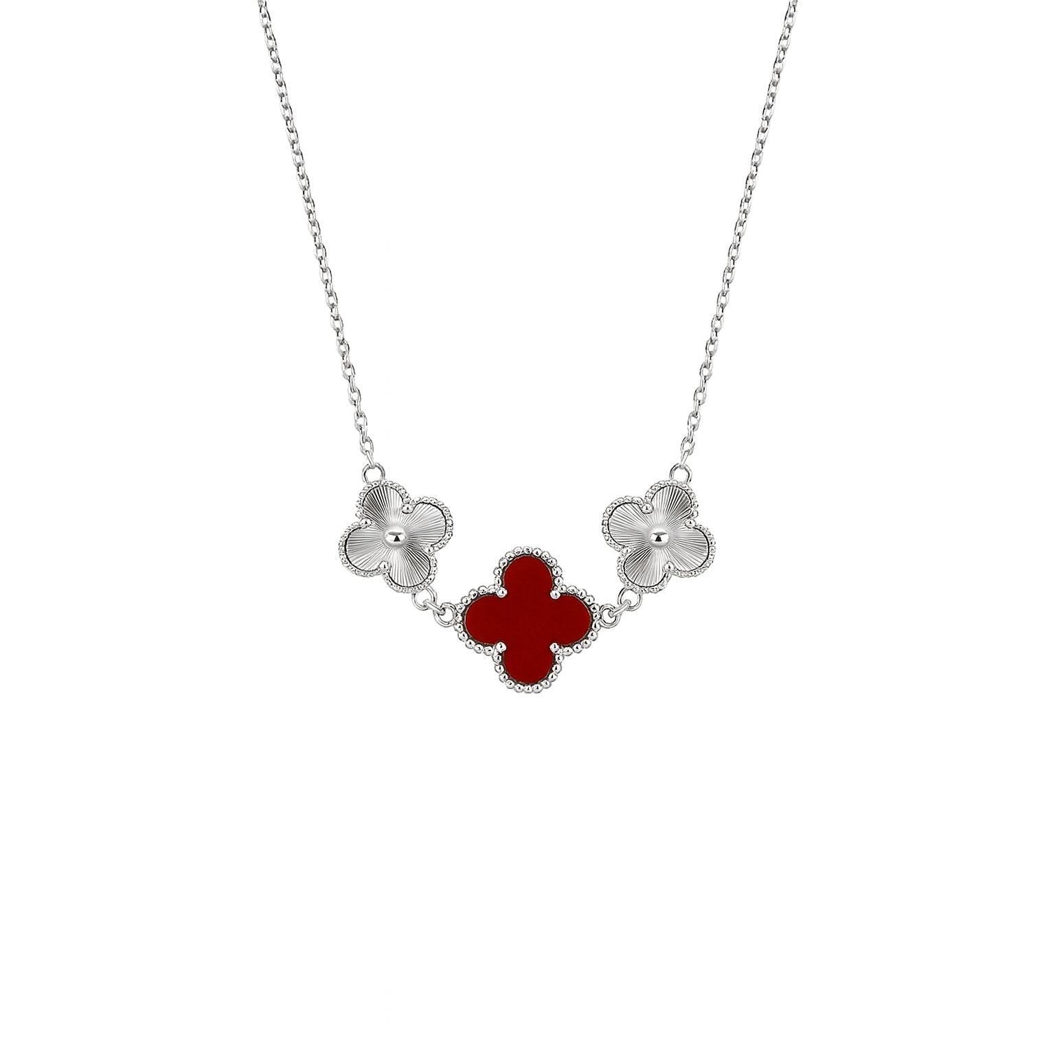 Make a bold and elegant statement with this Premium Pure Silver 925 necklace π. Designed with a striking red clover centerpiece β€οΈ surrounded by two delicate silver floral charms, this piece radiates passion, elegance, and timeless beauty.