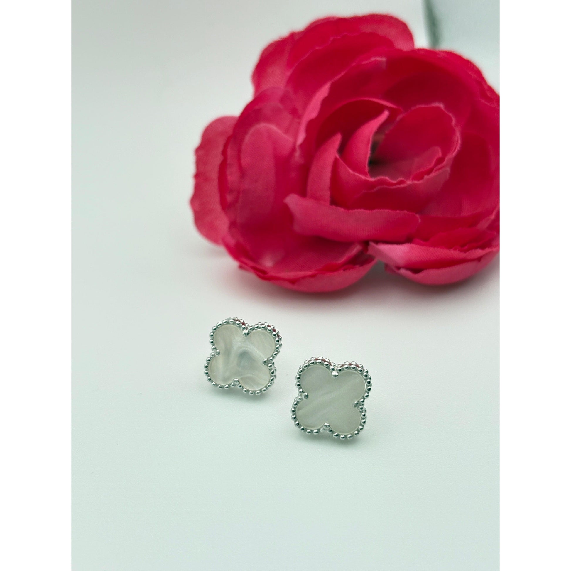 π Material: 925 Sterling Silver β¨ π Design: Four-leaf clover stud πΈ Color: White with silver trim π€ Hypoallergenic & tarnish-resistant π Perfect for daily wear & gifting
